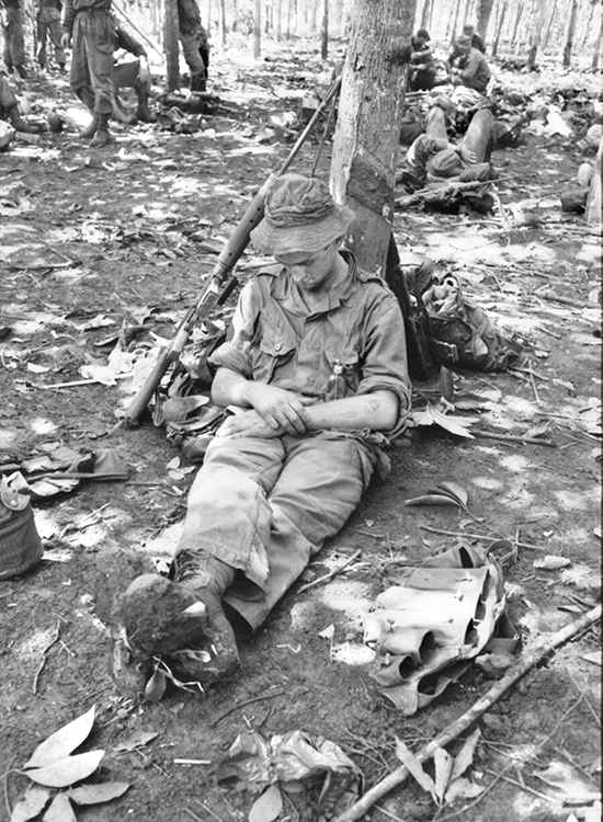 As D Company’s position became increasingly desperate, two RAAF helicopters succeeded in dropping ammunition to the men despite the heavy monsoonal downpour which persisted throughout the battle.